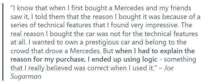 Once the emotion you evoke has done its job of snagging attention, then provide the features - the "logic" - that someone can use to justify their decision to invest time, effort, or money.