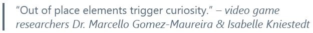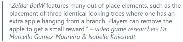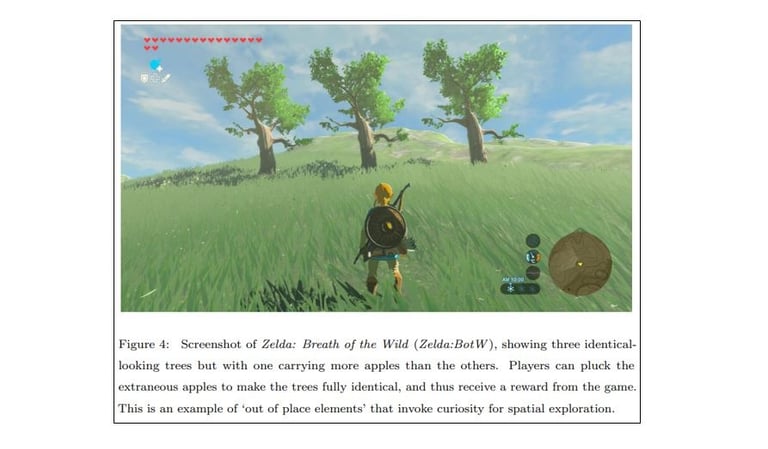 The third way that games like Zelda: BotW trigger curiosity is by hiding Easter Eggs. “It is not the existence of Easter Eggs that motivates exploration, but the potential that there might be one.”