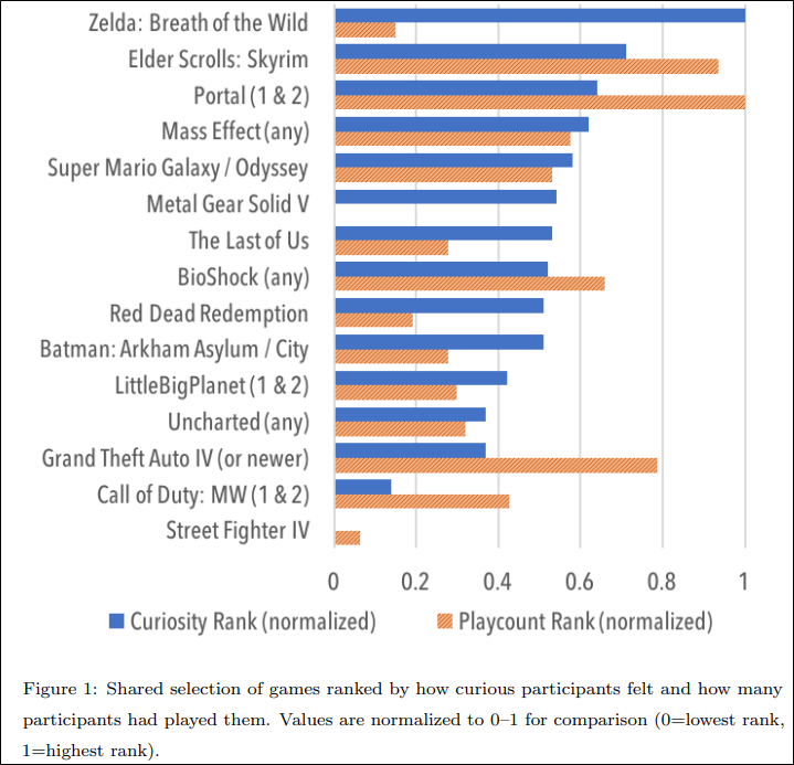 Deviations in common patterns also invoke curiosity. Zelda: Breath of the Wild does this particularly well, which is why players rank it #1 on the curiosity scale.