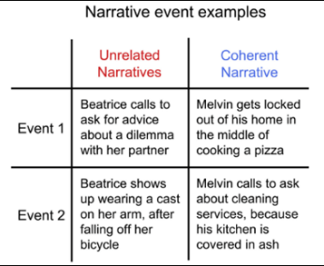 Why did people remember less about Beatrice? Because Beatrice’s events, the domestic fight and the cast, aren’t causally related. Melvin’s are. A kitchen fire will definitely result in an ash-covered mess.
